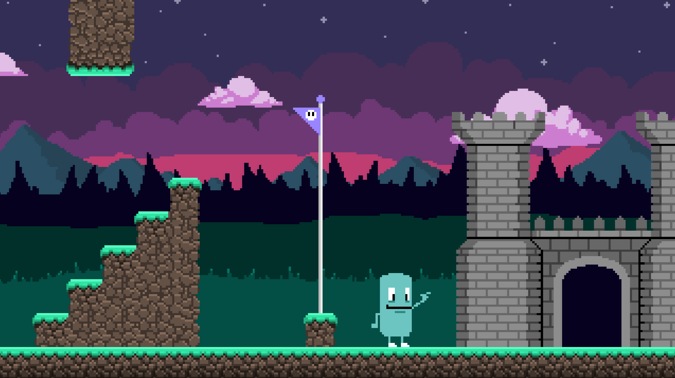 MoonWalker is a Platformer where you start at the end of the Level and have to shoot backwards. Don't get Chomped!